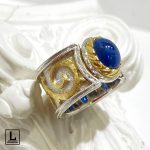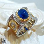 Domus Aurea Ring in White Gold and 18k Gold with Australian Cabochon Sapphire